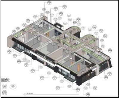 以Revit及Cubicost為主要軟體建置結構體、模型外觀、室內裝修及家具建置。並協助結構體、外裝、內裝、室裝等數量檢核,並進行機電整合及物業管理系統協助作業。